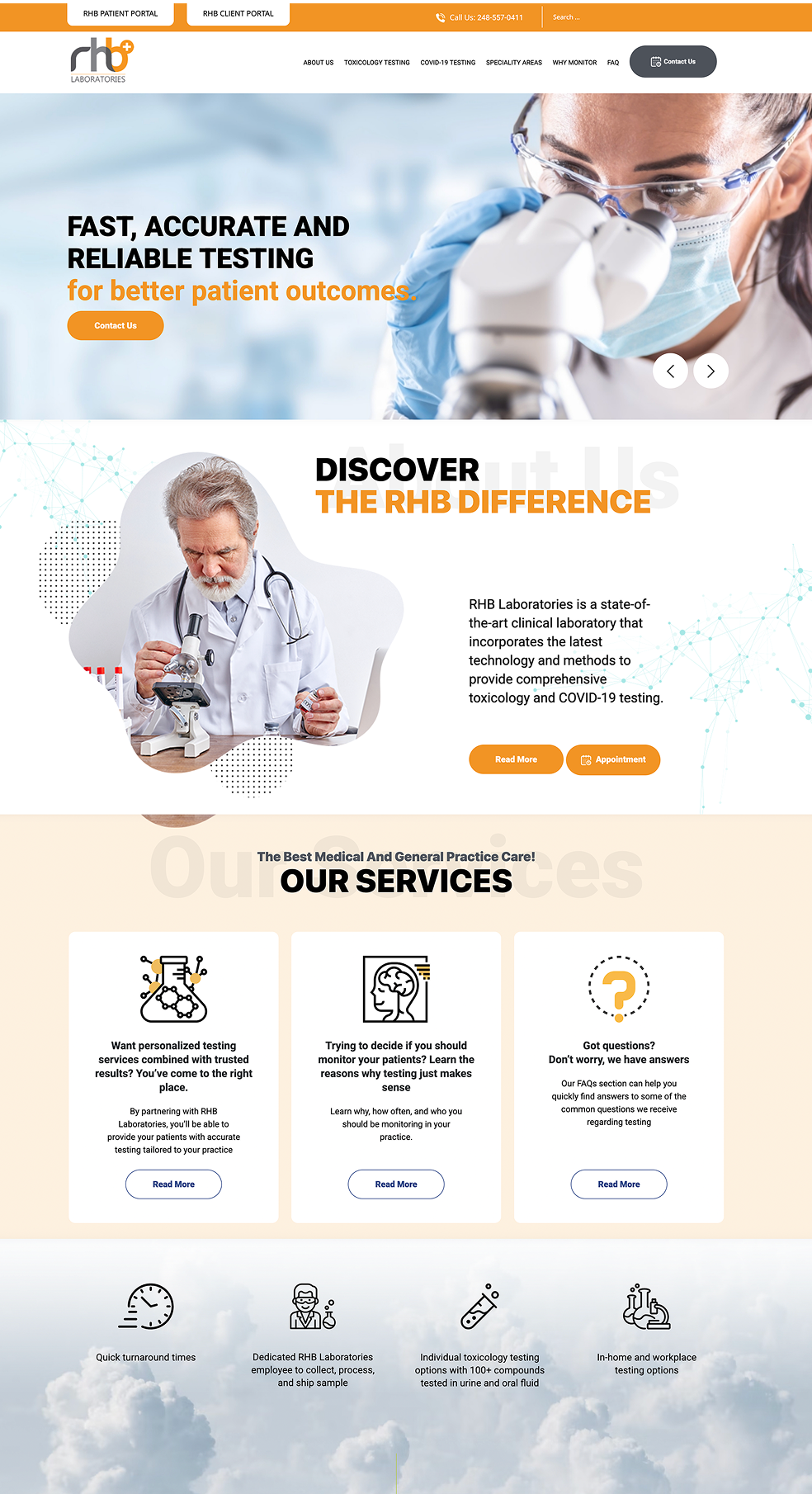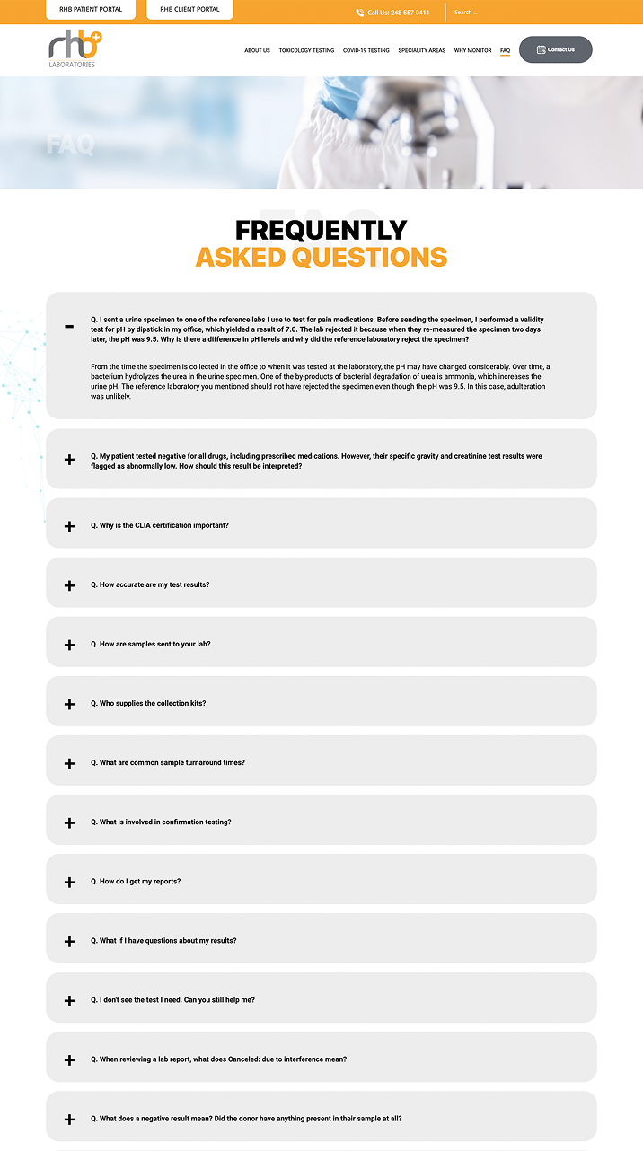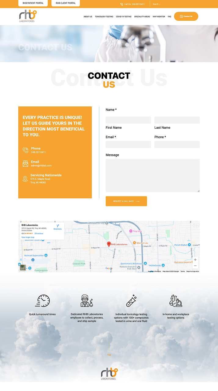For the website, We designed a clean, structured layout using a calm medical color scheme to reinforce trust. Service offerings were organized into clear blocks with intuitive navigation, ensuring quick access to toxicology testing, COVID-19 testing, and specialty services. The site was built to be fully responsive, ensuring seamless access across all devices.